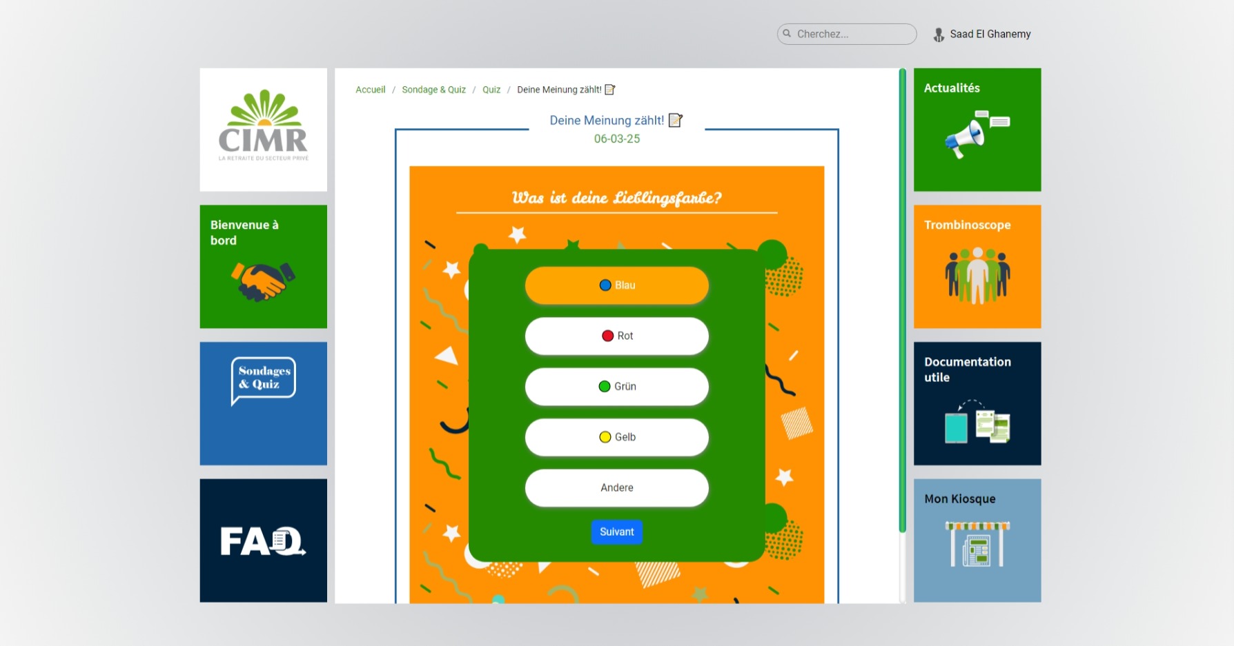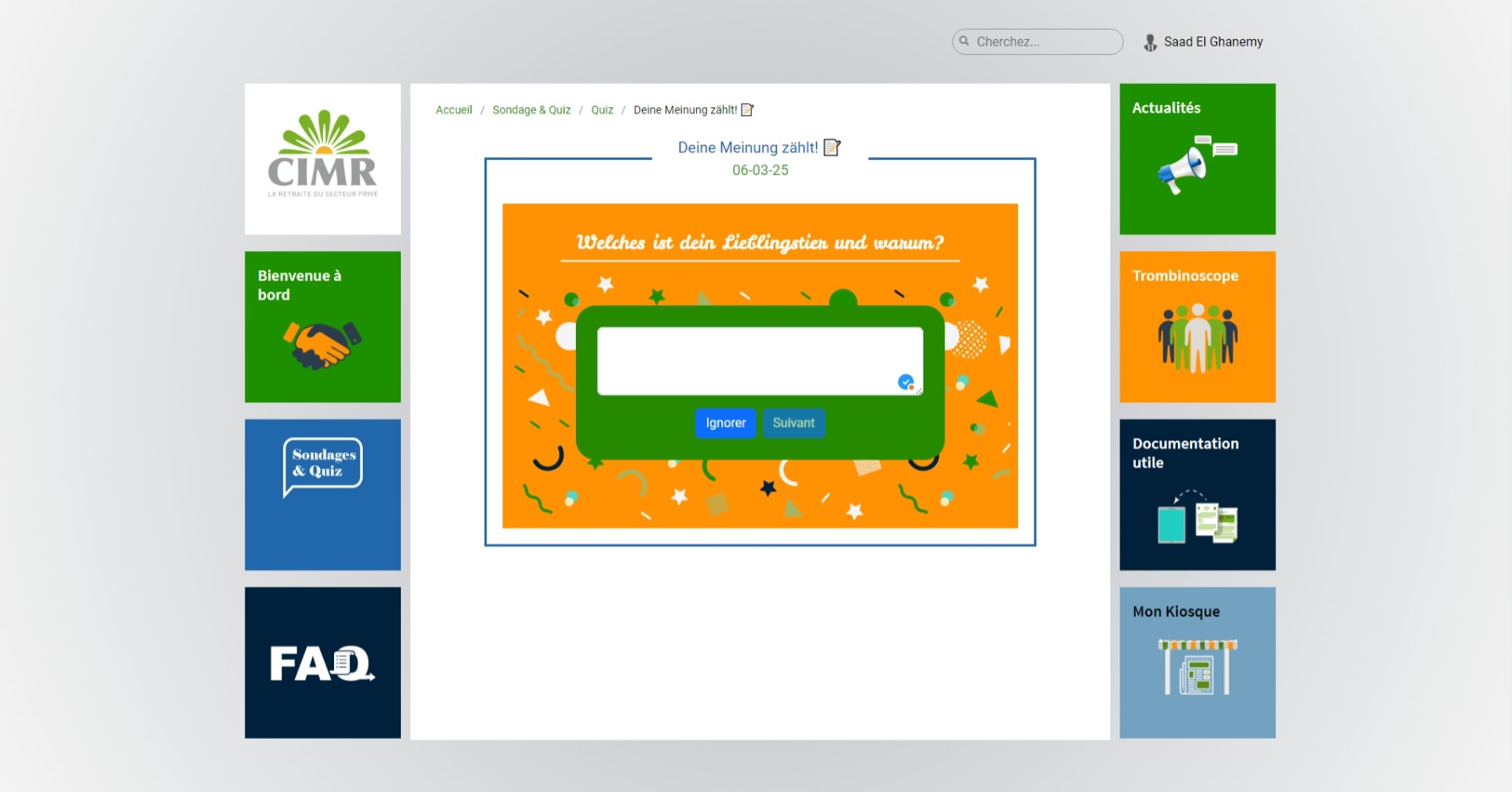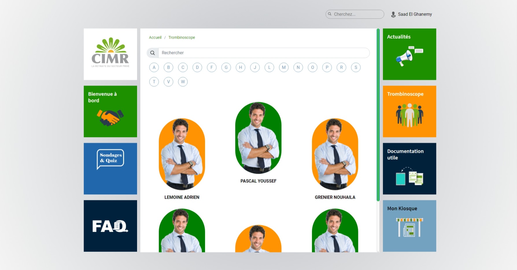 Design and development of an advanced intranet application for CIMR (Caisse Interprofessionnelle Marocaine de Retraites - Moroccan Interprofessional Retirement Fund). The application includes features such as quizzes, surveys, two-factor authentication, a dynamic FAQ section, and an interactive company organizational chart. This project enhances teamwork and communication, simplifies information exchange, and improves organizational efficiency.